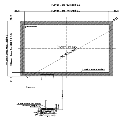 Outline of ITO Sensor: | 495.6*285.85±0.3mm |