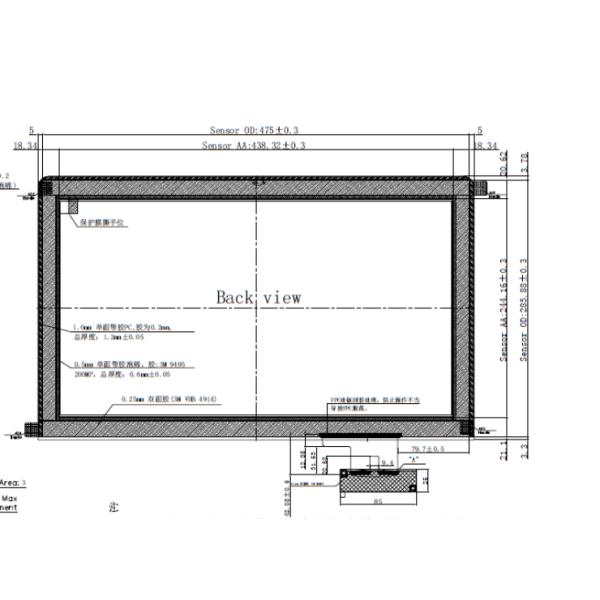 | Outline of ITO Sensor: | 475*285.88±0.3mm |